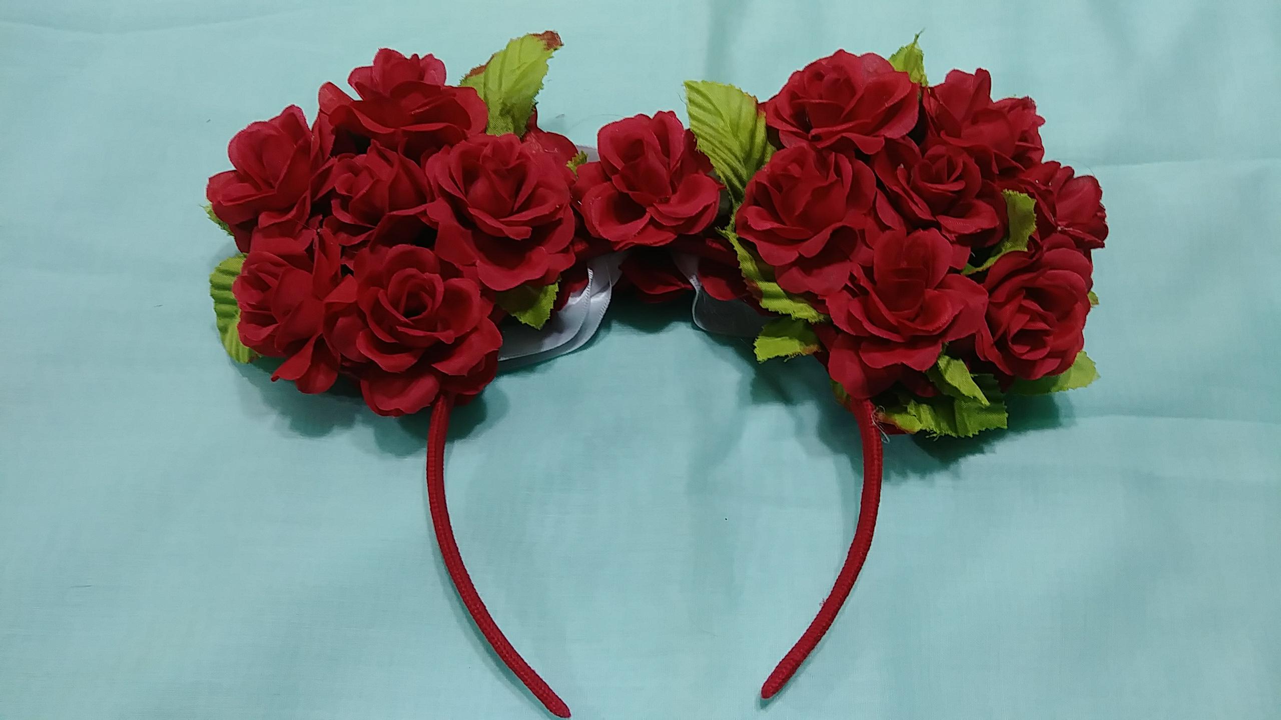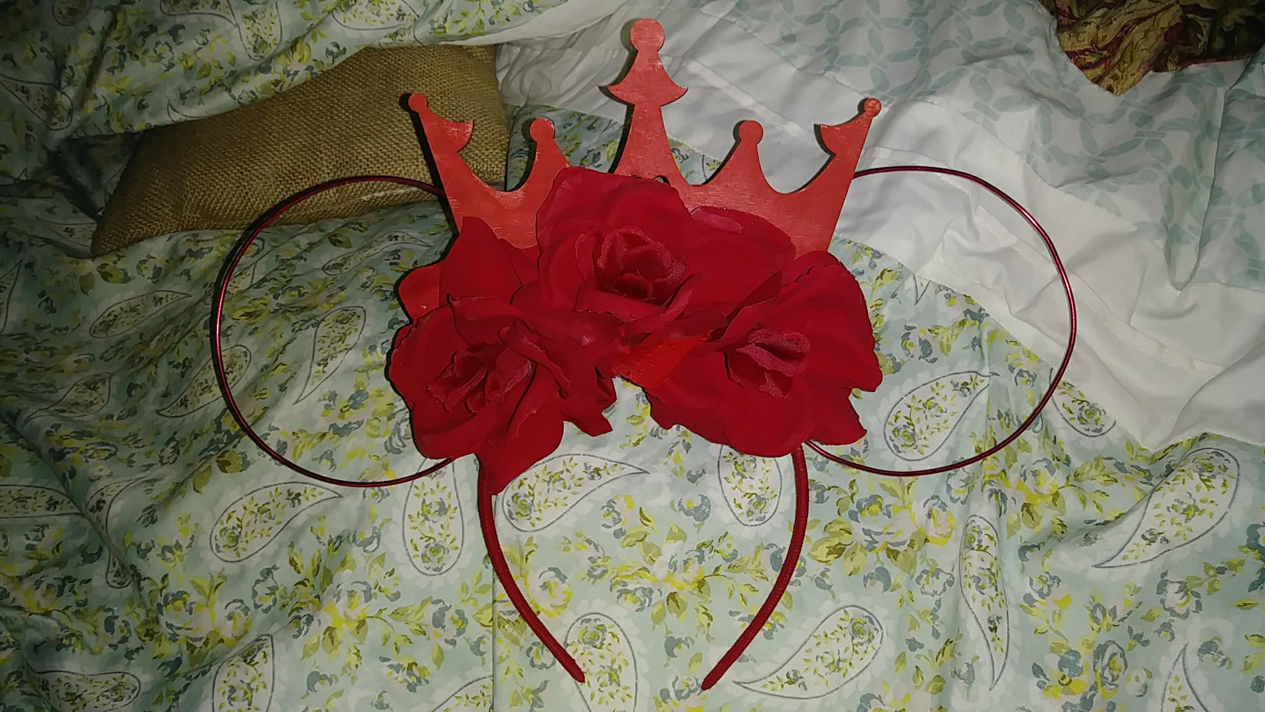 You too can look like the queen of hearts with this heart crown surrounded by read roses.